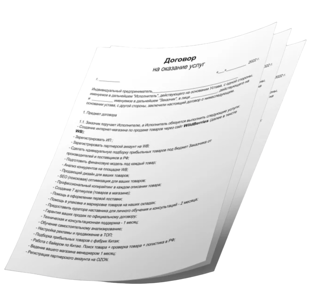 Мы работаем официально по договору, в котором прописываем гарантию рентабельности минимум в 20%. Оплата производится по счету на расчетный счет ИП по договору. Договор мы заключаем с вами на оказание услуг открытия магазина. Далее, если вы принимаете решение работать с нами в доверительном управлении, то мы подписываем дополнительное соглашение и предоставляем менеджера по ведению вашего магазина